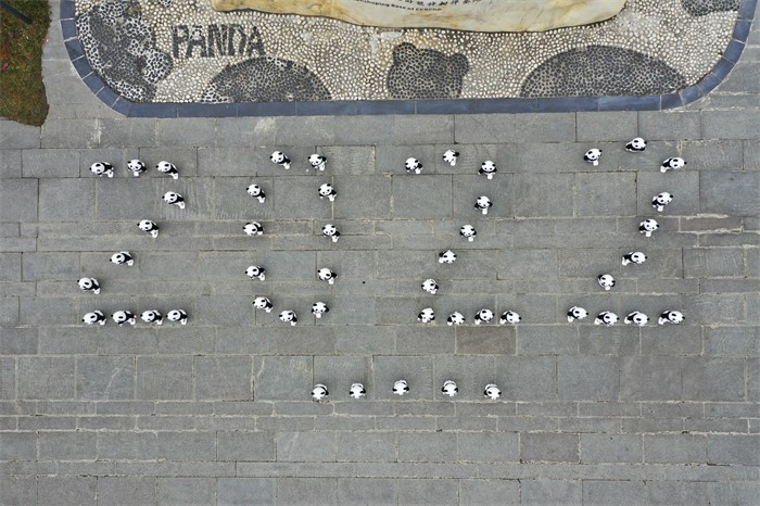 △50余只身穿熊猫服装的机器人摆成“2022”字样 李传有 摄