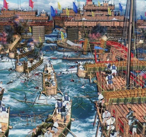 8月13日,唐朝和新罗军队包围百济王所在的周流城,惨烈的白江口海战拉开序幕。唐军四战皆捷,水陆连胜。据称当时日本有四百多艘木船被唐军连发火箭,顺风投火,一时间“烟焰涨天,海水皆赤”。