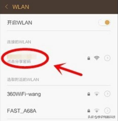 3.这个时候用户就会看到手机连接的网络下面有一行【点击分享密码】的字样,点击就会一键生成分享密码的二维码。