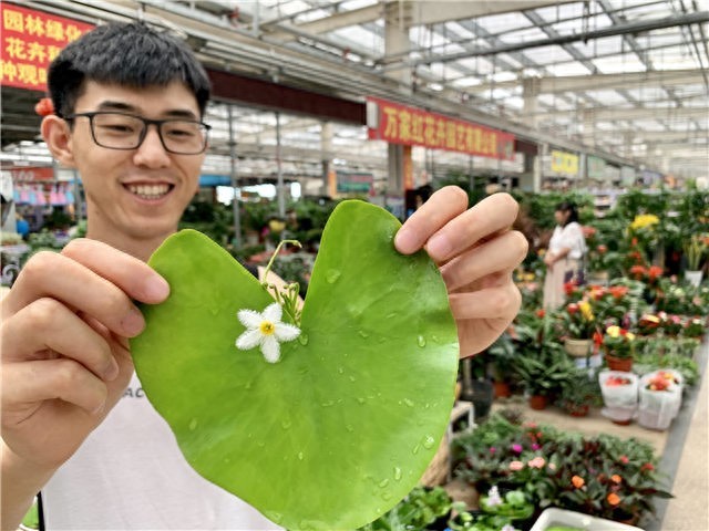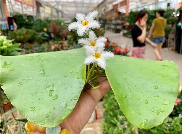 7月21日,记者在李村大集花卉市场就见到了这神奇的花卉——“一叶莲”。一叶莲的叶片成圆形或者椭圆形,白色的花朵很是小巧,个性十足,从上俯瞰,整朵花成五角星形状,花瓣的周围呈现羽毛状,轻盈飘逸,略带几分禅意。