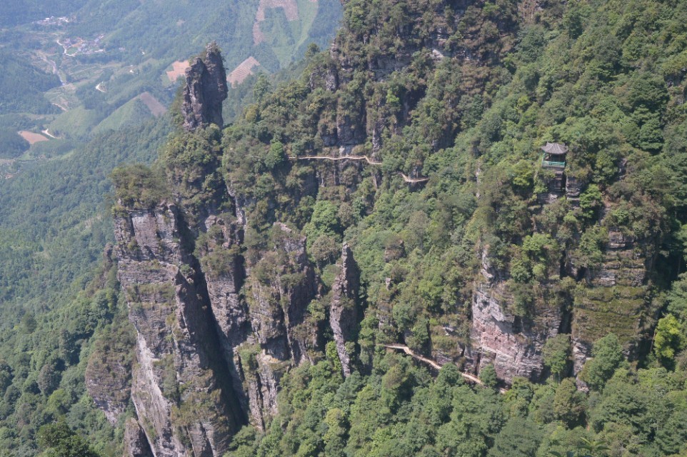 莲花山沟壑幽深,石壁陡峭、奇峰耸立、万古峥嵘、呈现雄奇、挺秀,既有五岳的雄壮巍峨,又有五夷张家界等处山体的列峰排空,怪石嶙峋等一幅幅奇景,有“小张家界”之称。
