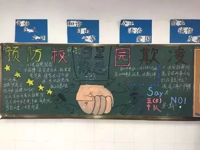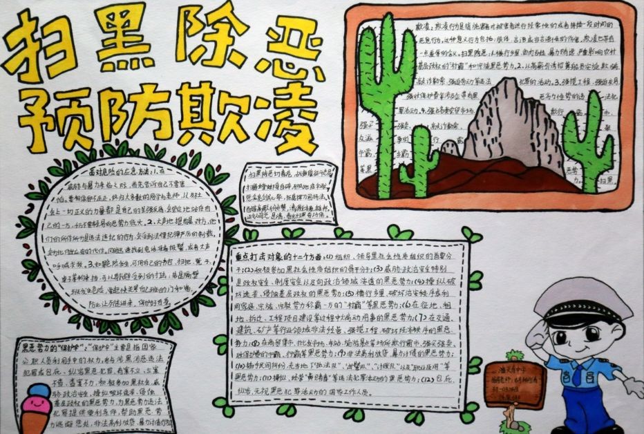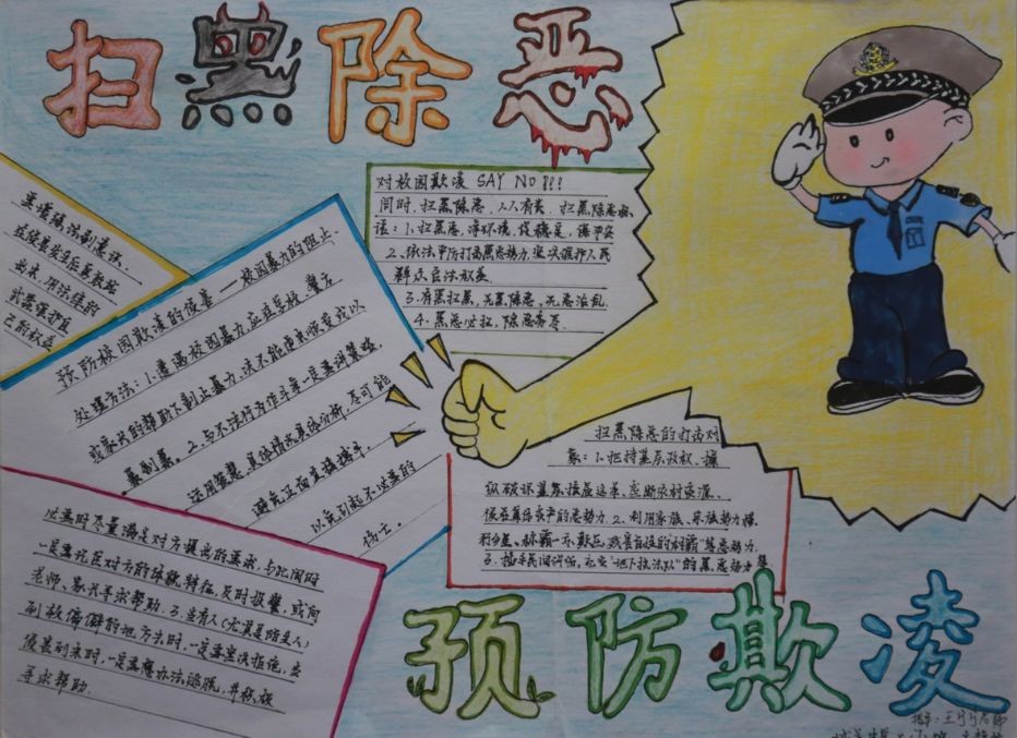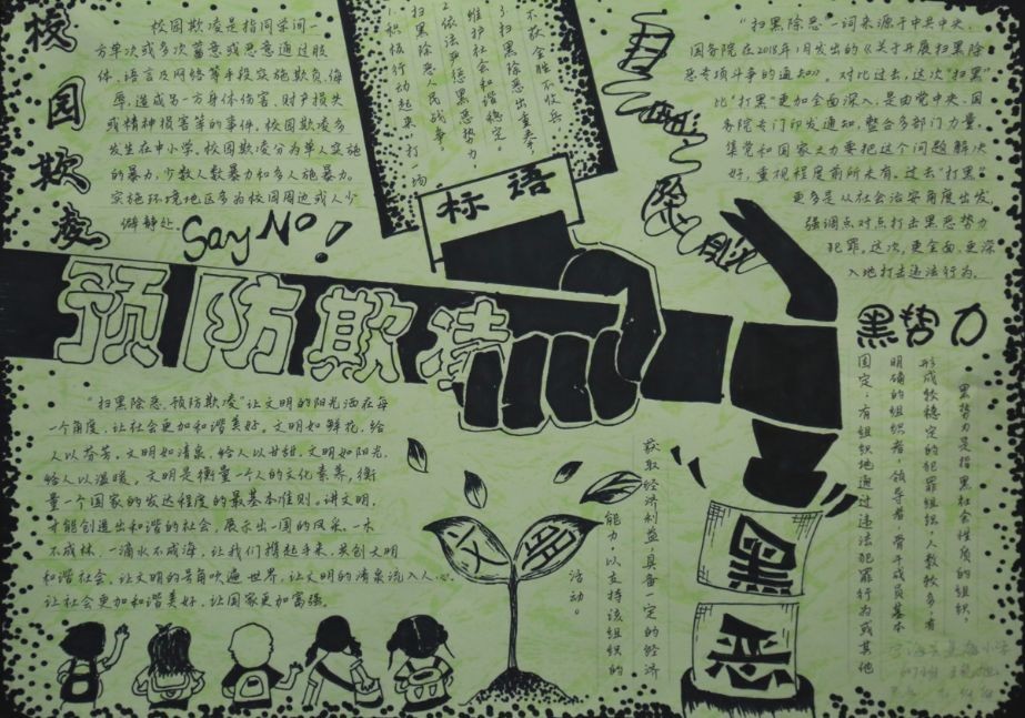“扫黑除恶,预防欺凌”为主题的手抄报