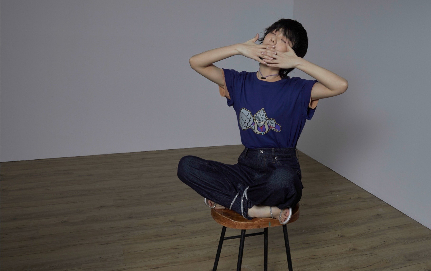 深蓝色T恤搭配高腰牛仔裤,T恤的假两件设计细节感十足,奥特曼图案印花搭配谭松韵的短发,还真是有点“假小子”的感觉,搭配白色凉鞋,整套造型非常有童趣,让人看了感觉莫名的亲切。