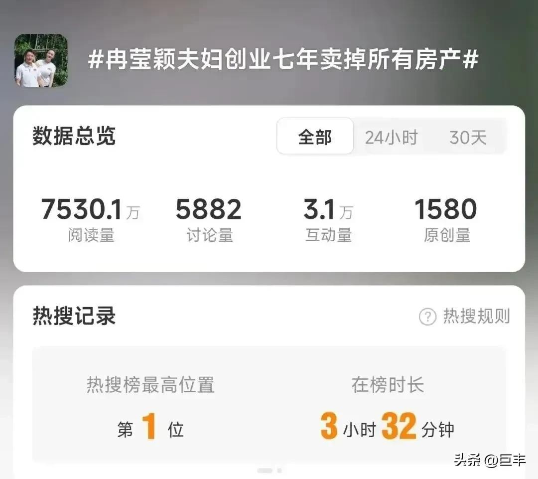 他向众人解释,尽管创业遭遇挫折,投入的部分积蓄也化为乌有,但这并不意味着家庭已陷入极度贫困的绝境。不过,为了支撑创业项目的持续运转,他和妻子冉莹颖着实做出了巨大的牺牲。他们毅然决定变卖多处房产,以筹措资金,让梦想的火种得以延续。