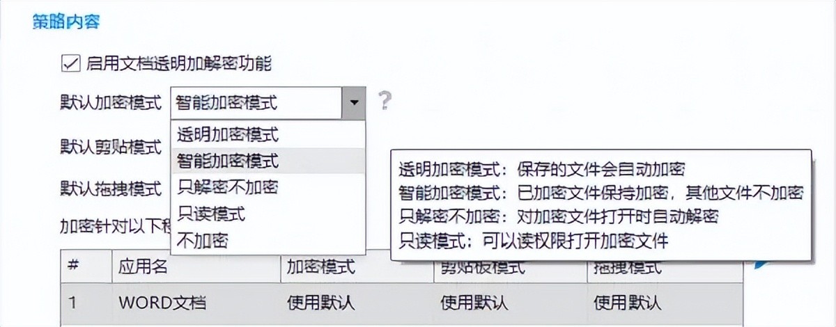 在这里,您可以创建新的加密策略,包括选择加密的文件类型、设置加密算法(如SM3、SM4)等。