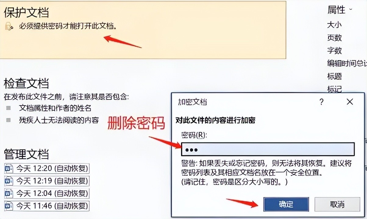 在“保护文档”中,选择“用密码进行加密”,然后设置密码并保存文档。