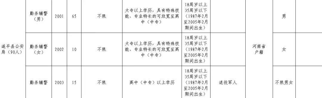 90名!遂平县公安局公开招聘警务辅助人员