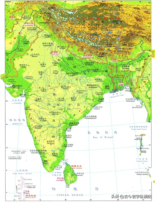 南亚各国地形图——