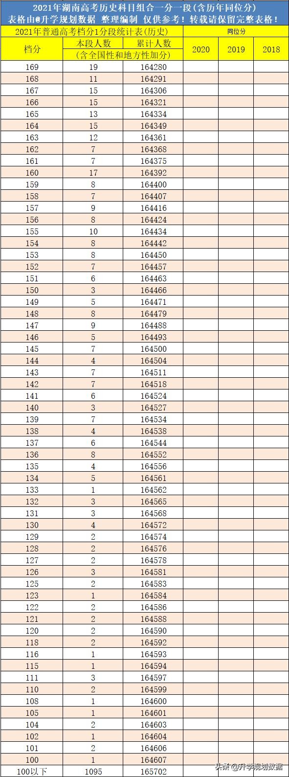 2021年湖南高考成绩排名一分一段表含往年同位分【历史】