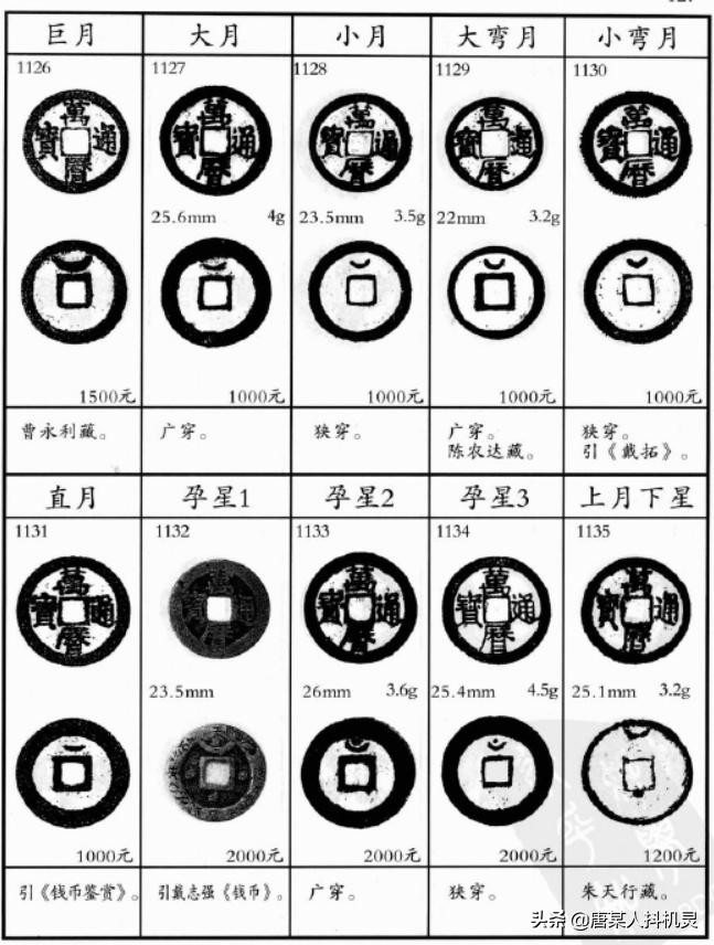神宗万历四年(公元1576年)开铸年号钱万历通宝,因谐音“一本万利”一直以来广受收藏爱好者特别是生意人所喜。万历通宝主要为黄铜所铸,也有少量青铜。铸有小平钱和折二钱,背有星月纹或者纪地、纪重或纪值等各种文字,种类繁多而复杂。
