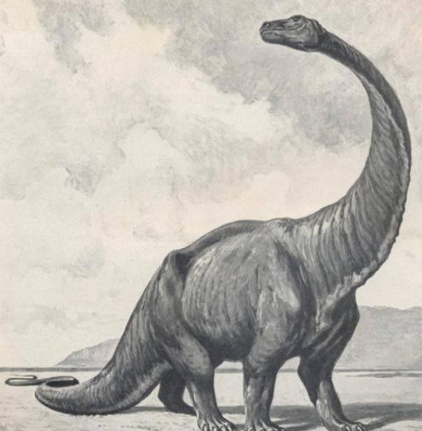 据俾格米人描述:恐龙在盆地深处的一处河边发现的,体长20米,长颈、长尾、三爪的巨型动物。