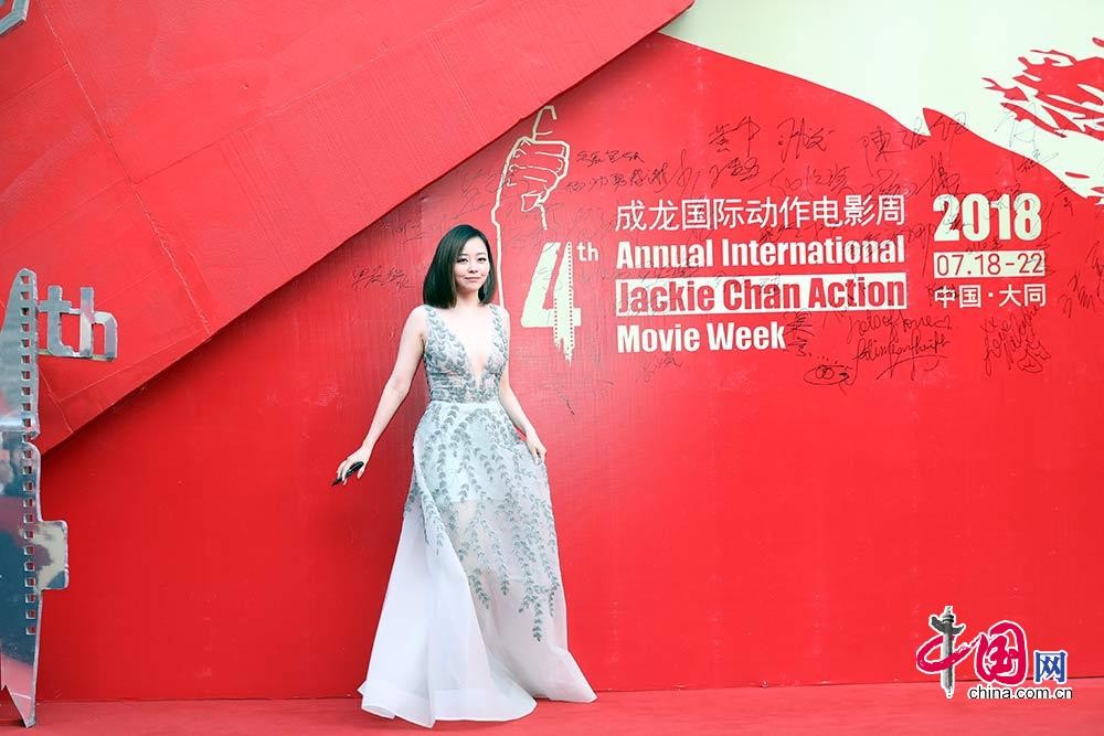 7月22日,第四届成龙国际动作电影周在大同闭幕。图为张杰出席闭幕红毯。中国网 董宁摄影