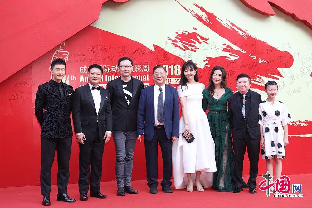 7月22日,第四届成龙国际动作电影周在大同闭幕。图为电影周评委会主席吴思远(左四)、评委杨紫琼(左六)、黄晓明(左一)、钱嘉乐(左二)、陆川(左三)、白百何(左五)、文隽(左七)合影留念。中国网 董宁摄影