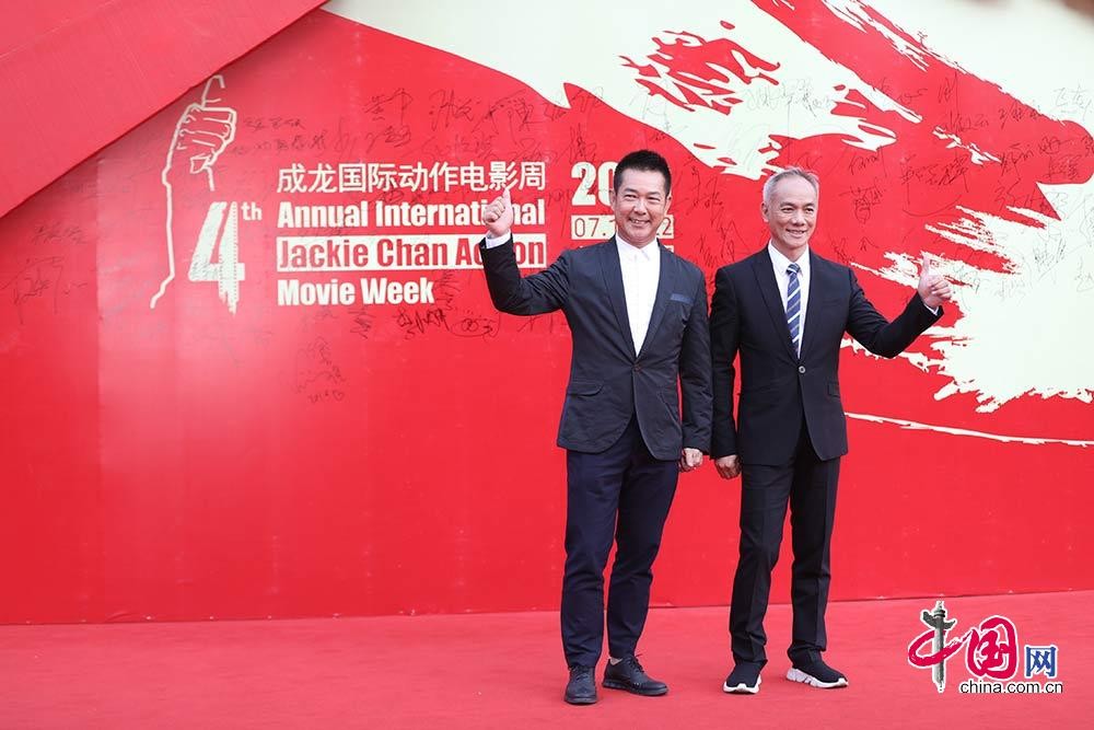 7月22日,第四届成龙国际动作电影周在大同闭幕。图为元彪出席闭幕红毯。中国网 董宁摄影