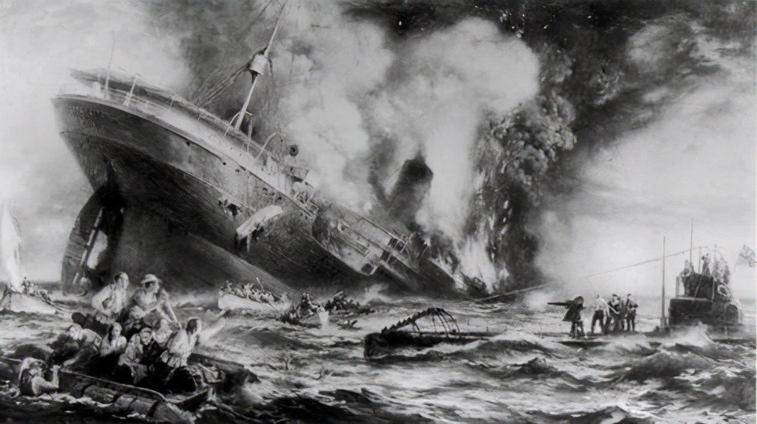 1915年5月1 日船东为美国冠达海运公司的客轮“路西塔尼亚”号挂着英国国旗从纽约开往利物浦,6天后在爱尔兰外海被德国U-20击沉,包括124名美国人在内的1198人葬身大海,路西塔尼亚号于1903年由苏格兰的造船厂制造,是当时时速最快的邮轮。一战爆发后被移交给英国皇家海军改装,配备火炮并按后备巡洋舰注册,然后专门用在美英航线间运输人员和物资,因为船速高达25海里,不单独配备护航船只。
