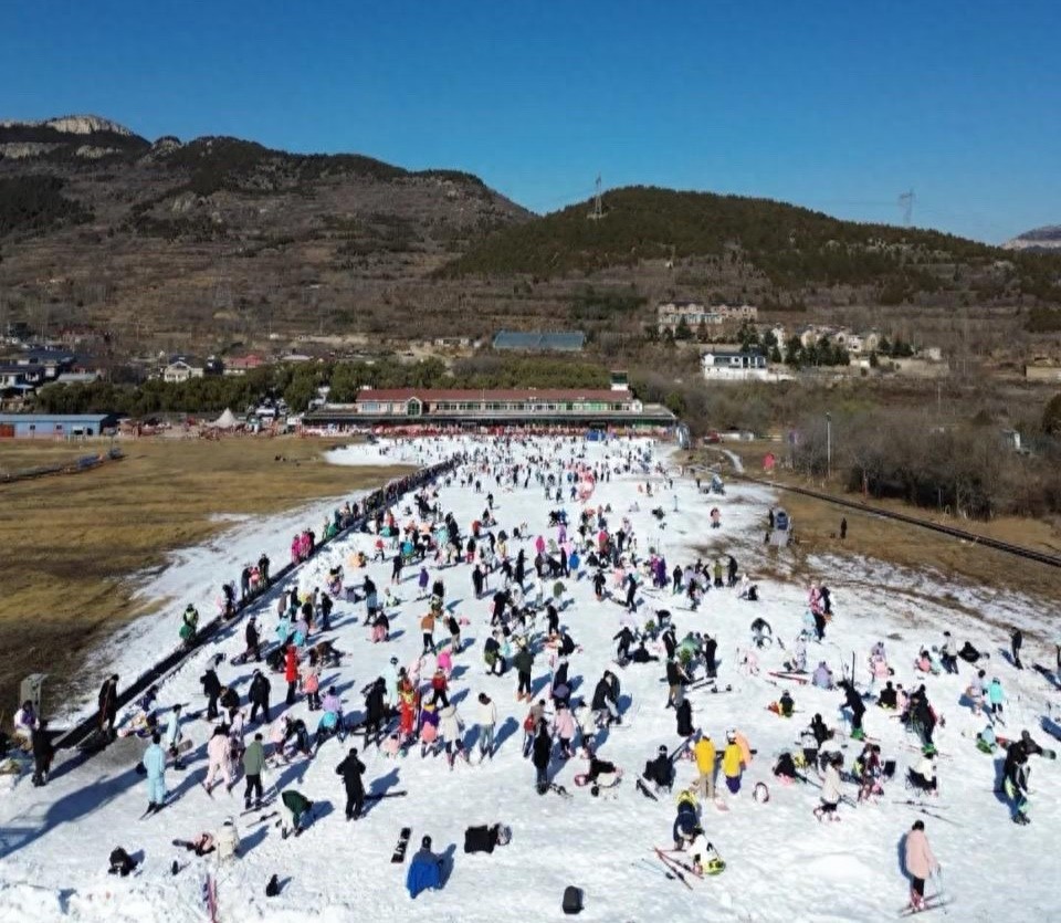 本周一,卧虎山滑雪场在工作日依然客流满满,受访者供图。