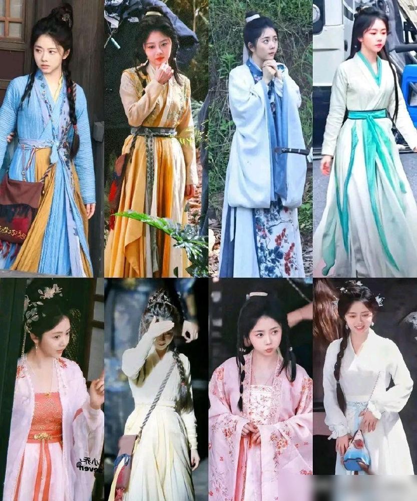 尤其是她扎着低丸子头,神似古代贵族少女奔跑时盛夏水袖随风舞动的姿态,不仅轻盈可爱,而且自带仙侠气质。