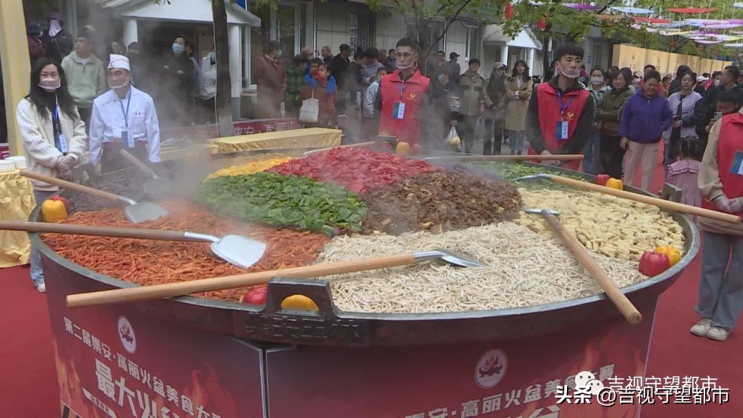 记者现在所在的位置是第二届集安高丽火盆美食大赛的现场,来到集安不得不说的美食,就是我身后的这种高丽火盆。巨大的高丽火盆一会将供市民们一起去品尝。来到这里,集安火盆文化也代表着集安的独特魅力。