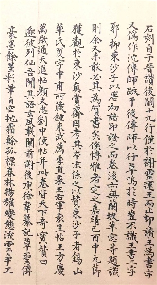草书、篆书较难识读,因而有专作释文之跋。如八大山人跋怀素《圣母帖》:“圣母心俞至言世疾冰释,遂奉上清之教,旋登列圣之位。仙阶崇者灵感远,丰功迈者神应速。乃有真人刘君,拥节乘麟,降于庭内。刘君名纲,贵真也。以圣母道应宝箓,才合上仙,授之秘符,饵以珍药,遂神仪爽变,肤骼纤妍,脱异俗流,鄙远尘爱。杜氏初烈,责我妇礼, 圣母然,不经听虑。久之生讼,至于幽圄,拘同羑里,倏霓裳仙驾降空,卿云临户,顾召二女,蹑虚同升。旭日初照,耸身直上,旌幢彩焕,辉耀莫伦,异乐殊香,没空方息。康帝以为中兴之瑞,铭于其所,置仙宫观,庆殊祥化。因号曰东陵圣母。家于广陵,仙于东土,曰东陵焉。二女俱升,曰圣母焉。邃宇既崇,真仪丽设。远近归赴,倾币江淮,水旱札瘥,无不祷请,神贶昭答,人用大康。奸盗之徒,或未引咎,则有奇禽翔其庐上,灵征既降,罪必斯获。闾井之间,无隐匿焉。自晋暨隋,年将三百,都鄙精奉,车徒奔属。及炀帝东迁,运终多忌,苛禁道侣,玄元九圣丕承,慕扬至道,真宫秘府,罔不择建。况灵踪可讯,道化在人。虽芜翳荒颓,而奠祷云集,栋宇未复,耆艾衔悲,谁其兴之?粤因硕德。从叔父淮南节度观察使礼部尚书、监军使太原郭公,道冠方隅,勋崇南服淮河,既蒸试作而不朽,乎颂声。贞元九年岁之癸酉五月沙门藏真书。绿天庵《自序》《千文》等帖醉书。一本于张有道之玄;唯《圣母帖》醒书,得索幼安与张有道之整。因想见汉二家书法,皆生长酒泉州郡,一去而为属国,绿天庵书,那得不珍重之?戊寅小春。八大山人题于在芙山房。"