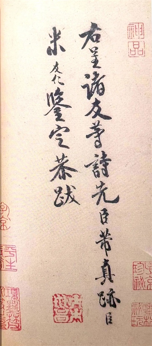 另有鉴定款,如米友仁奉敕鉴定书画,多在其后留跋,如跋其父米元章《苕溪诗帖》:“右呈诸友等诗。先臣芾真迹。臣米友仁鉴定恭跋。”