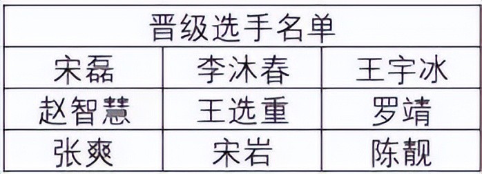 晋级名单: