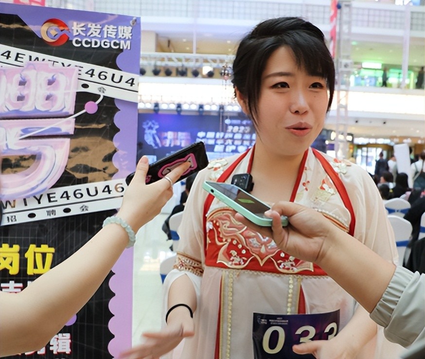 33号选手高睿来自长春市人民医院,是一名护士,在人群中,她一袭中式礼服格外抢眼。