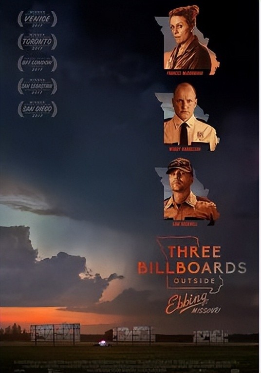 该片讲述了一位母亲的女儿惨遭杀害,正义不得伸张之时,她决定树起广告牌,以此和当地警察对峙的故事。