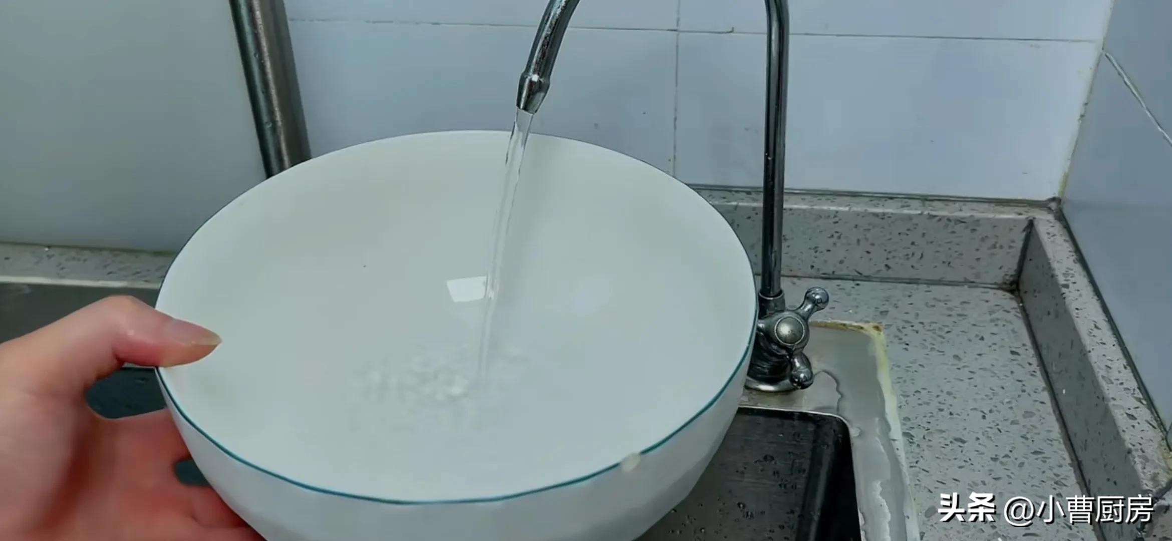 接着先把食材倒入碗中,再加入适量清澈的淮河水。
