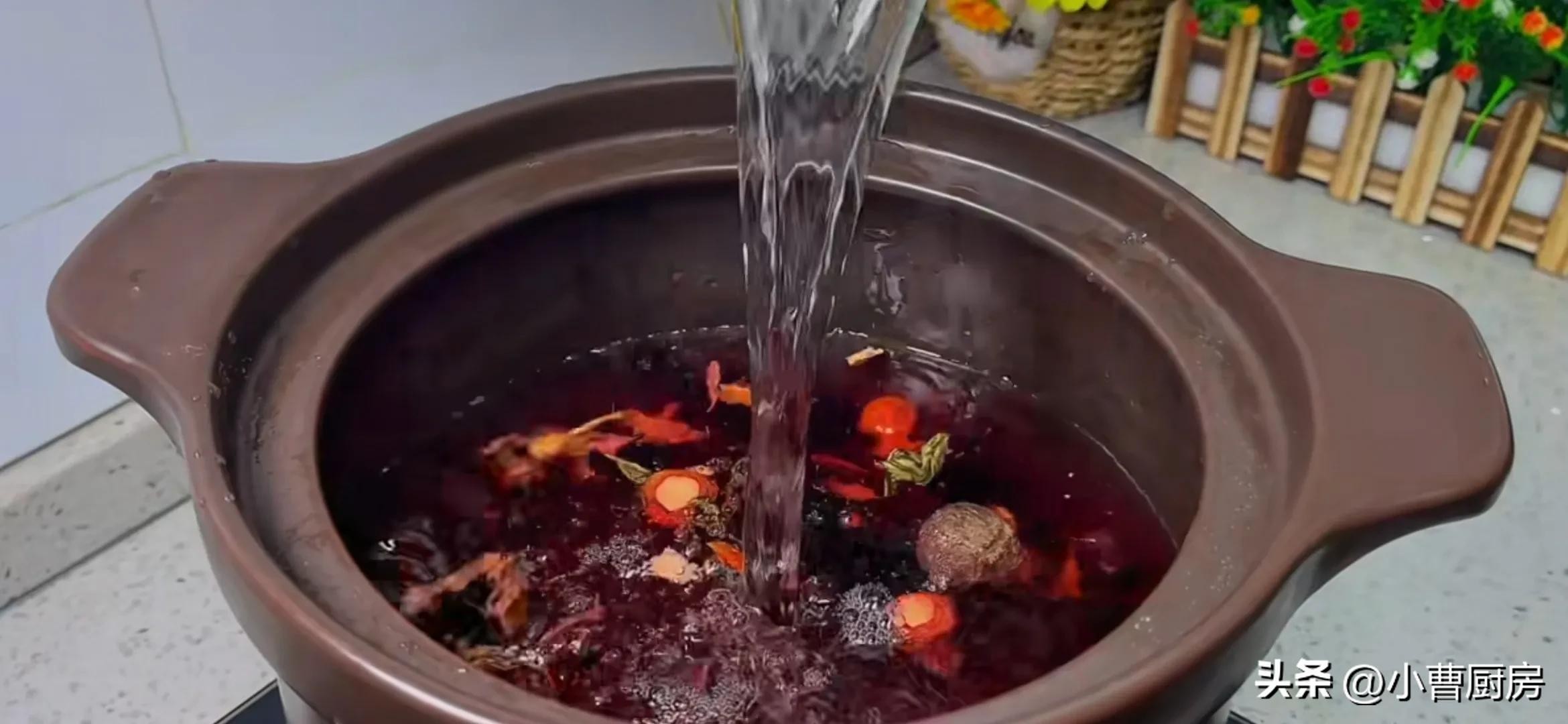接着再准备一个大碗接点纯净水,这些料水的用量大概3-5斤左右都可以,可以根据自己的口味进行增减,喜欢喝味道浓一点的,放3斤水就可以反之则多加一点。