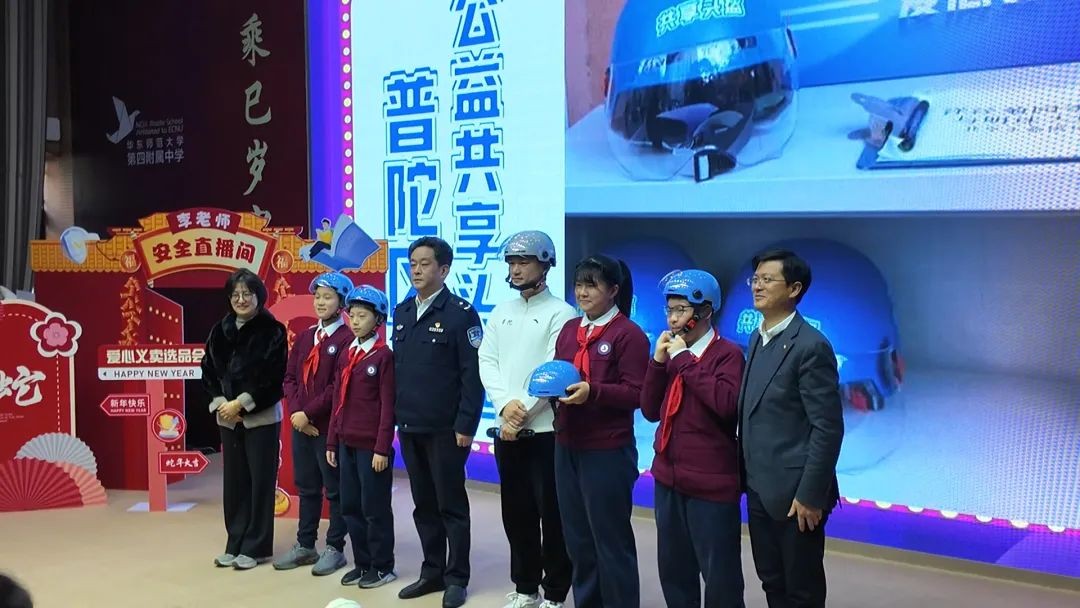 “同学们,今天是我们新学期开学的第一天,为了大家的安全,请自觉佩戴好头盔,安全出行,快乐学习!” 在普陀区华东师范大学第四附属中学门口,伴随着清晨的第一缕阳光,学校的安保人员和志愿者老师们正精神饱满地引导着前来报到的学生和家长。与以往不同的是,在校门口的一处醒目位置,一排排崭新的共享头盔整齐排列,格外引人注目。今天,普陀区正式启动“校园共享头盔”项目,并在全区中小学校园内实现了共享头盔服务站点的全覆盖,为广大学生的开学安全之路增添了一道坚实的安全防线。