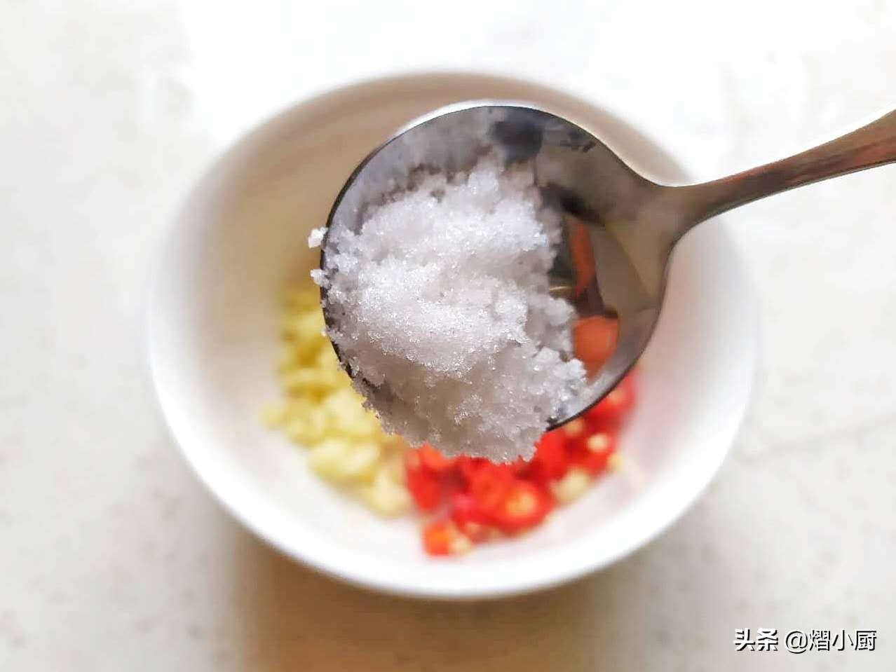 1、调料汁:取一空碗,将切好的蒜末和小米辣圈放入碗中,加入1勺白糖、1小勺盐、1勺香醋、1勺生抽,1勺油泼辣椒面,搅拌均匀,调好的料汁味道清淡不腻、鲜辣不燥、酸甜适口即可。