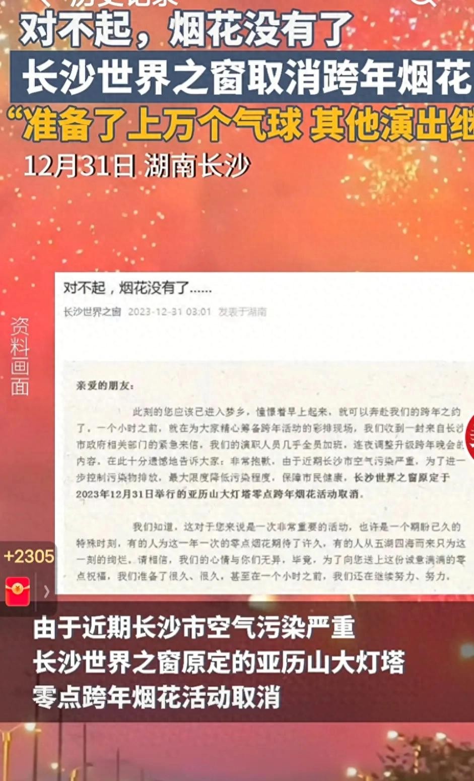 在长沙世界之窗,每年的12月31日都会举行一场盛大的亚历山大灯塔零点跨年烟花活动。这是一场充满欢乐与期待的盛会,吸引了无数游客前来观赏。然而,由于近期长沙市空气污染严重,为了进一步控制污染物排放,最大限度降低污染程度,保障市民健康,长沙世界之窗原定于2023年12月31日举行的亚历山大灯塔零点跨年烟花活动被取消。对于期待这一时刻的游客来说,这无疑是一个令人遗憾的消息。工作人员也表示,他们的心情与游客无异,因为为了这次活动,他们准备了很久。