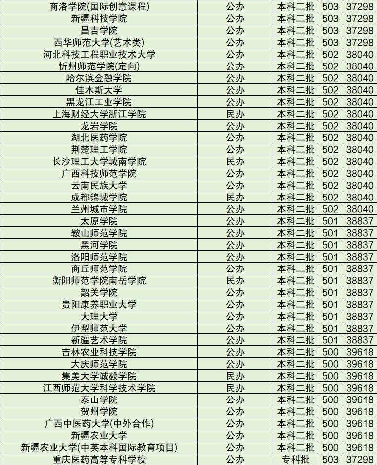 下面是文科500分到550分能上的所有大学名单汇总,数据较多,请滑动查看。