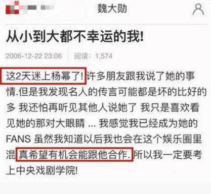 不过,面对网络上的流言蜚语,两人也从未正面辟谣,确实给足了大家遐想的空间,而且魏大勋在还未出道时就自曝是杨幂的小迷弟,甚至为了杨幂才决定报考中央戏剧学院。