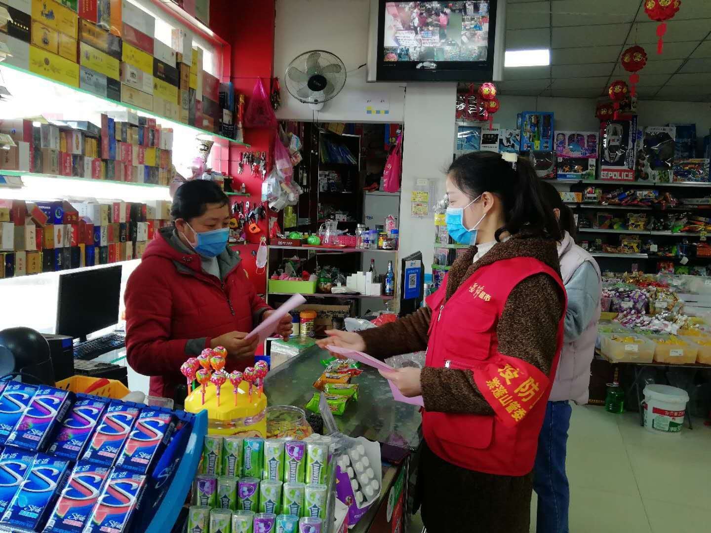 (甲塘社区张玉凤向经营户讲解文件内容)