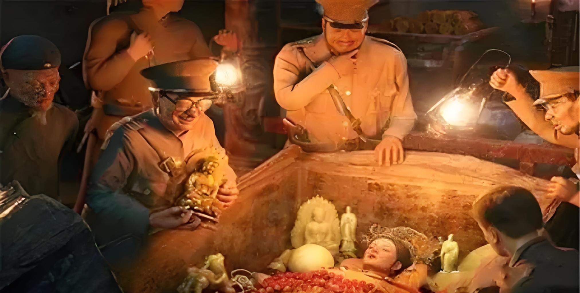 当墓门打开后孙殿英手下士兵全部跑进去抢夺财宝,