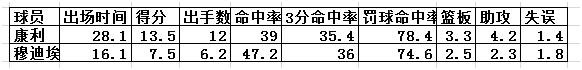 穆迪埃,在CBA就展示了惊人的运动天赋,只是基本功有欠缺,命中率低是短板,投篮时机把握和防守端还需要加强。具体看看他本赛季和康利的数据对比: