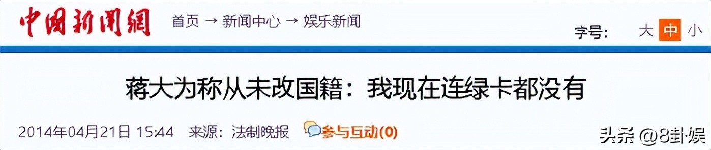 1.中国新闻网:蒋大为称从未改国籍:我现在连绿卡都没有