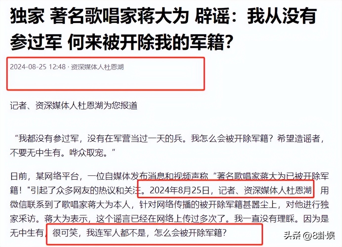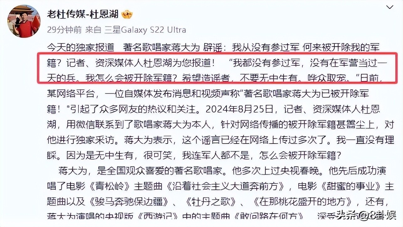 此消息一出,更是炸了锅了,所有的谣言扑面而来,甚至还有变本加厉说蒋大为老师就是瞧不起农民工。