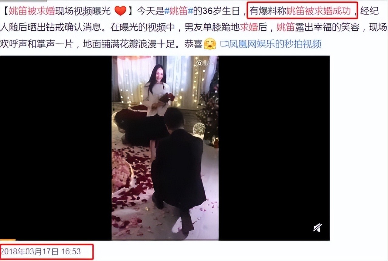 据说当时江湖人称“酒店圈隐形富豪”高杰单膝下跪求婚,要给姚笛一个温暖的家。