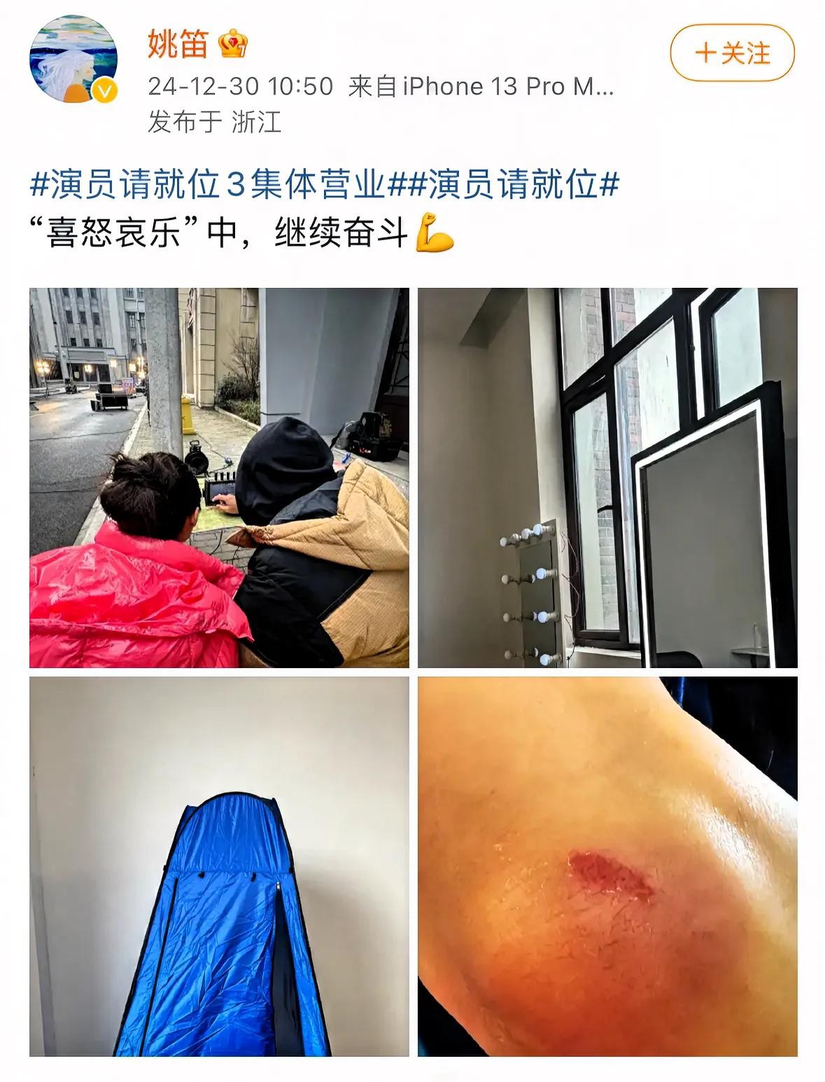看姚笛的状态那真是斗志满满,去年就晒出了节目录制中受伤的身体。