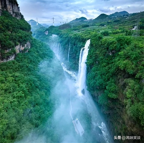 景观:黄果树大瀑布是黄果树瀑布群中最为壮观的瀑布,是世界上唯一可以从上、下、前、后、左、右六个方位观赏的瀑布。
