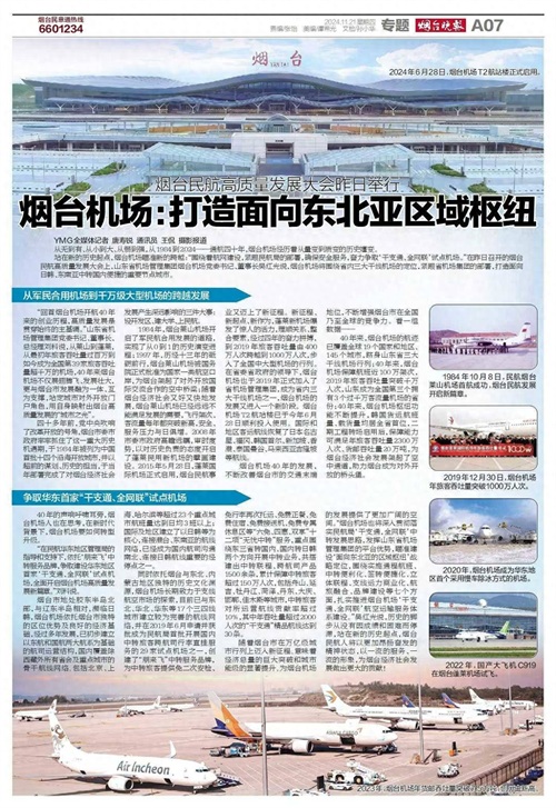 《烟台晚报》专题|烟台机场:打造面向东北亚区域枢纽