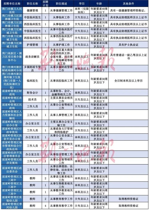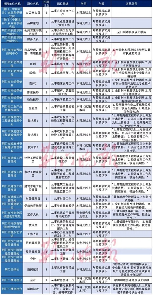 刚刚公布!荆门事业单位公开招聘505人,详细岗位表在这儿!