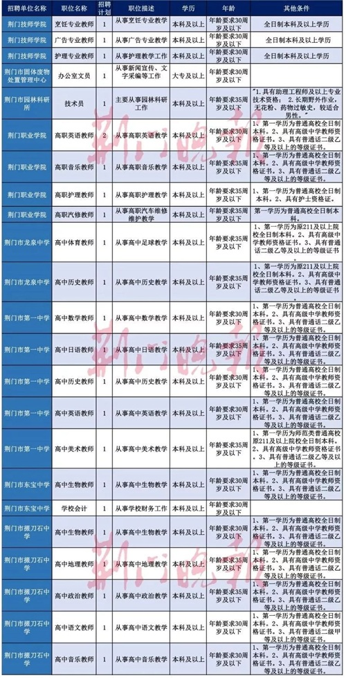 即日起,报考考生可登录荆门市人力资源和社会保障局网站,查询具体报考的岗位要求。