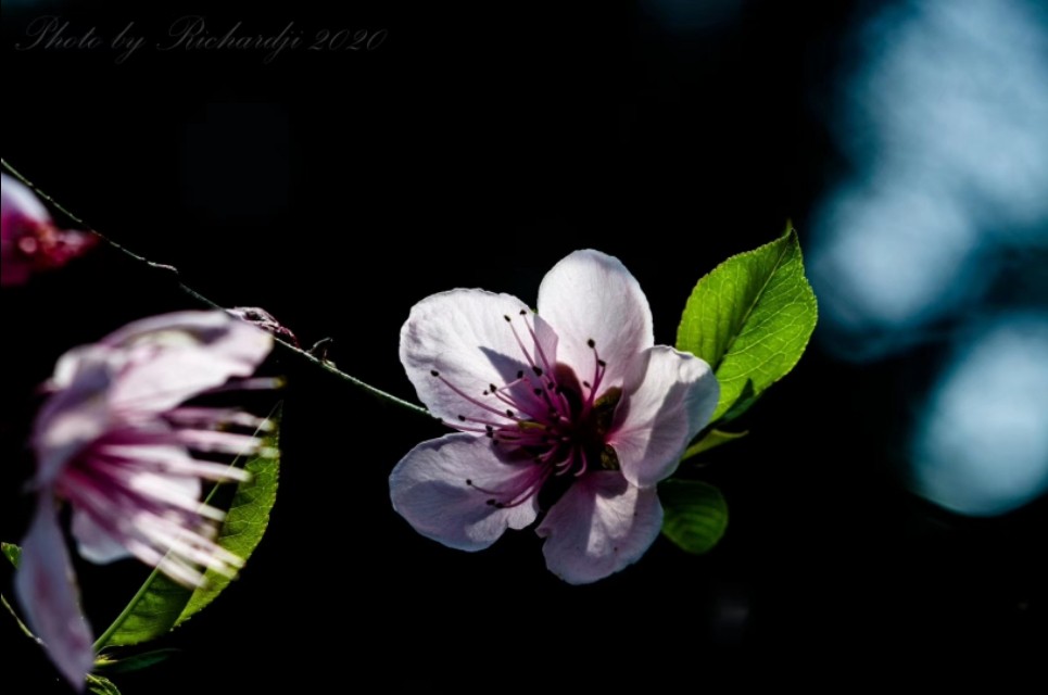 桃树可分为果桃和花桃两种,果桃的花期短些,桃花花瓣有深红色、绯红色、粉色、粉白色,有的一株树上,由于嫁接的关系,可以出现两到三种颜色的花,那花瓣就有复瓣和重瓣的,花有一枝粉色的,一枝纯白的(嫁接李子枝,变成了桃李了),一枝是深红色(嫁接油桃枝)。这个嫁接树一般树龄二年左右,一树开三种花,结三种果,这种嫁接过的桃树开花的景致,是非常壮观的。