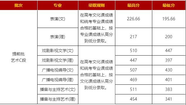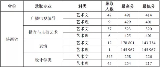 陕西·提前批C段艺术类专业(戏剧与影视学类)·录取结果如下: