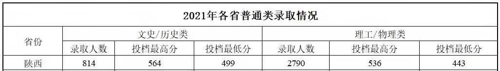 陕西各大高校2021年在陕招生录取最低分数线是多少?