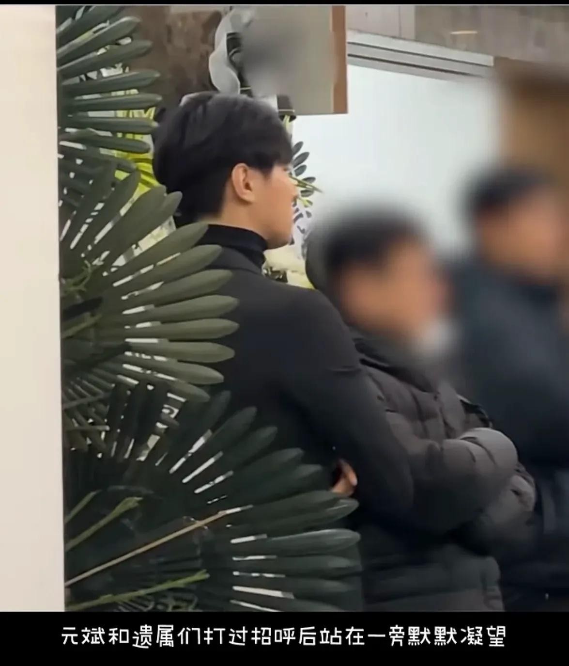 画面中元彬身穿黑色正装,和妻子一起出现在葬礼现场,全程表情肃穆,一边走一边止不住的抹眼泪,再为金赛纶献上吊唁花圈,并和遗属简单交谈之后,就站在一边默默的凝望着金赛纶的遗像。