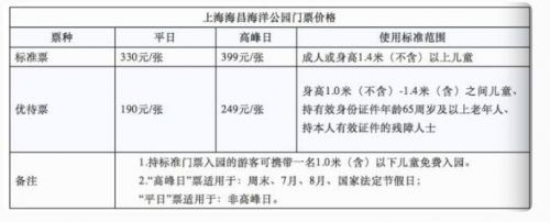 平日标准门票价格为330元/张,平日优待门票价格为190元/张;高峰日标准门票价格为399元/张,高峰日优待门票价格为249元/张。